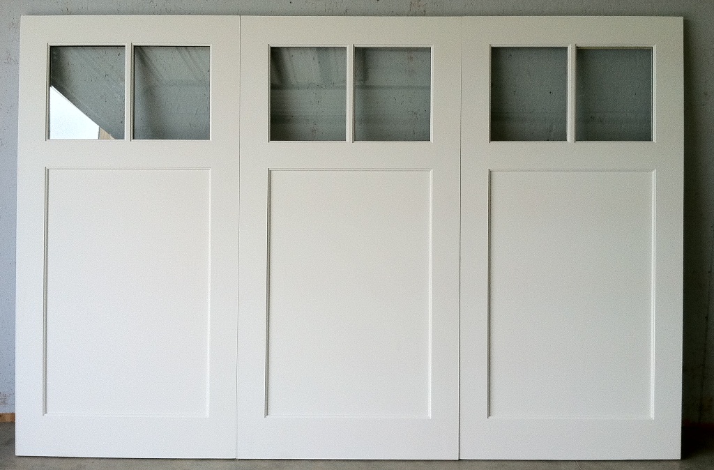 1-3/4" Hemlock Fir Carriage Door 16' x 7' Opening Converted To A 12'x7' Prehung Carriage Door Set with side lites on each side |